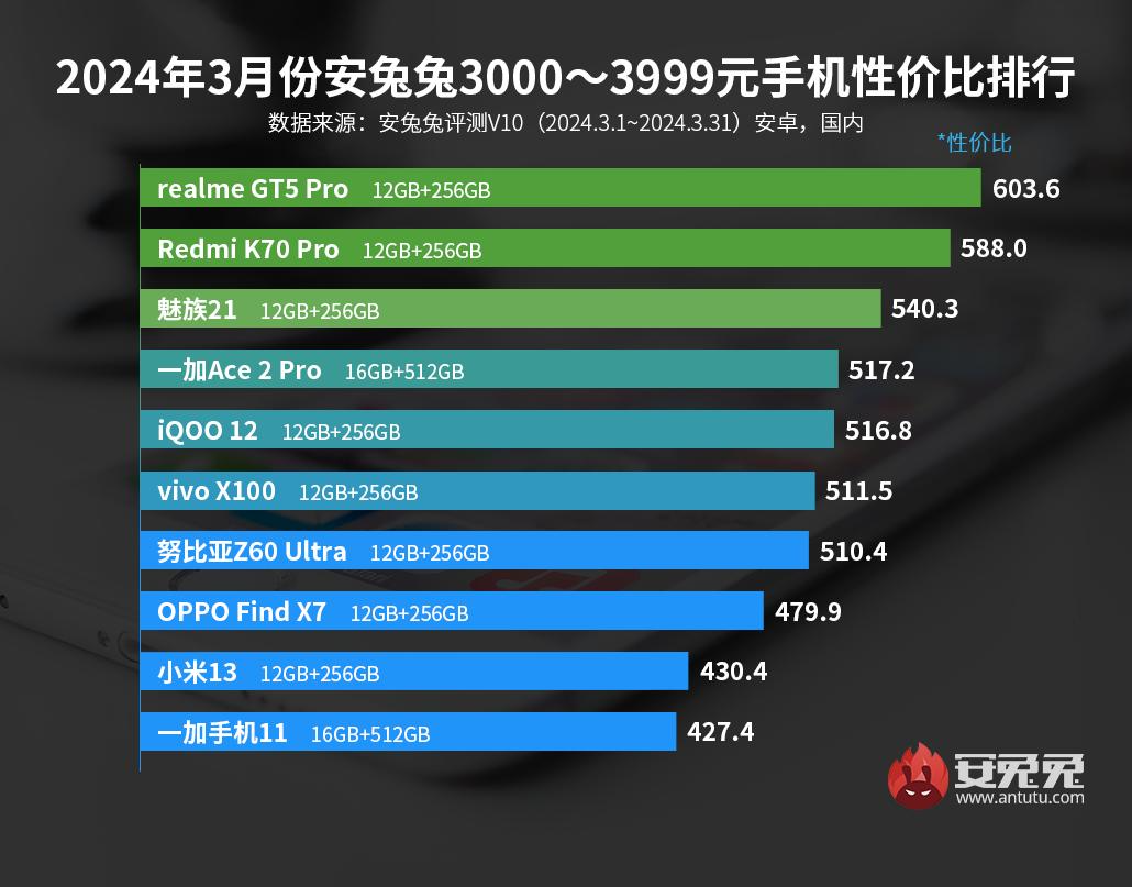 В категории от 4000 юаней (от 553 долларов) первое и второе места занимают OnePlus 12 и Xiaomi 14, третье место занял Honor Magic6. Все три флагмана базируются Qualcomm Snapdragon 8 Gen3.