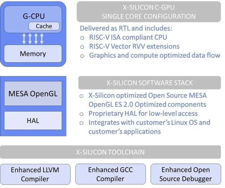 Продукт компании спроектирован как универсальный процессор. Этот новый CPU/GPU RISC-V предоставляет производителям единый открытый чип, способный справиться с любой желаемой рабочей нагрузкой. Чип X-Silicon не похож на другие архитектуры, поскольку его конструкция сочетает в себе возможности CPU и GPU в одноядерной архитектуре. Это не похоже на типичные решения Intel и AMD, где есть отдельные ядра CPU и ядра GPU. Вместо этого само ядро X-Silicon предназначено для выполнения задач как процессора, так и графического процессора. Когда-то нечто подобное в рамках проекта Larabee разрабатывала Intel.