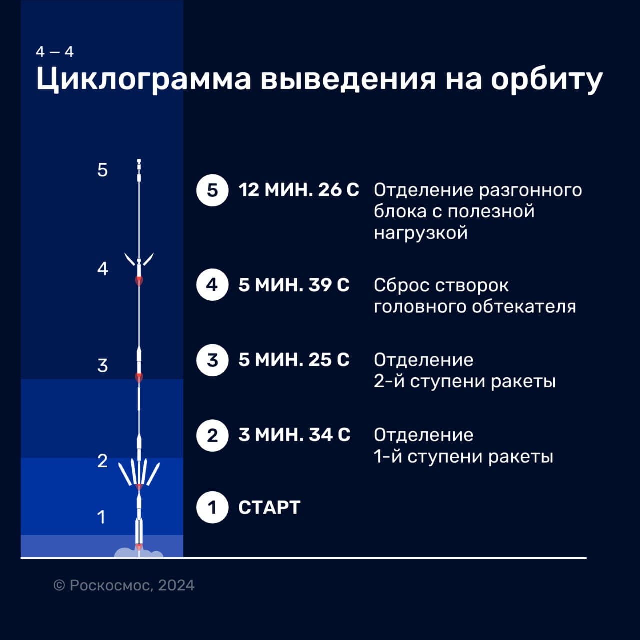 «Ангара-А5» несёт разгонный блок «Орион» и испытательную полезную нагрузку. Её запуск с площадки 1А запланирован на 9 апреля в 12:00:00 по московскому времени. Чуть больше чем через 12 минут должно состояться отделение разгонного блока с полезной нагрузкой.