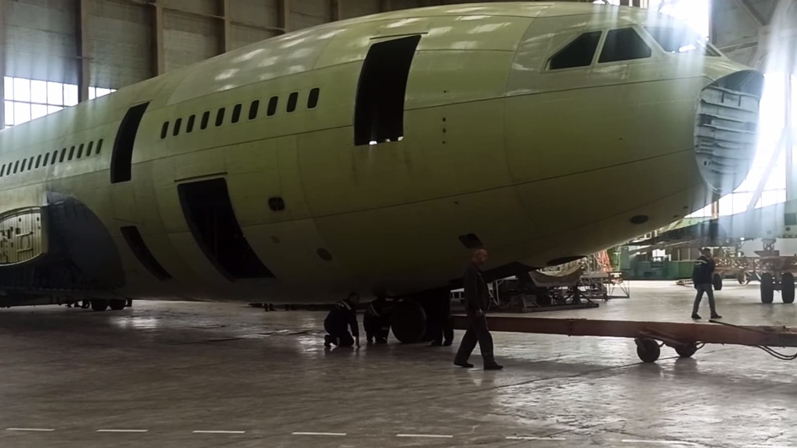 Объединенная авиастроительная корпорация выкатила очередной фюзеляж Ил-96-300 в цех окончательной сборки на воронежском авиазаводе ВАСО, заявив, что темп производства российских широкофюзеляжных авиалайнеров Ил-96-300 вырос до двух самолетов в год.