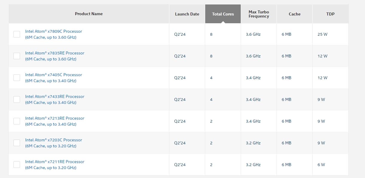 Эти CPU содержат только малые ядра и производятся по техпроцессу Intel 7. Они предлагают от 2 до 8 ядер, TDP 6-25 Вт.