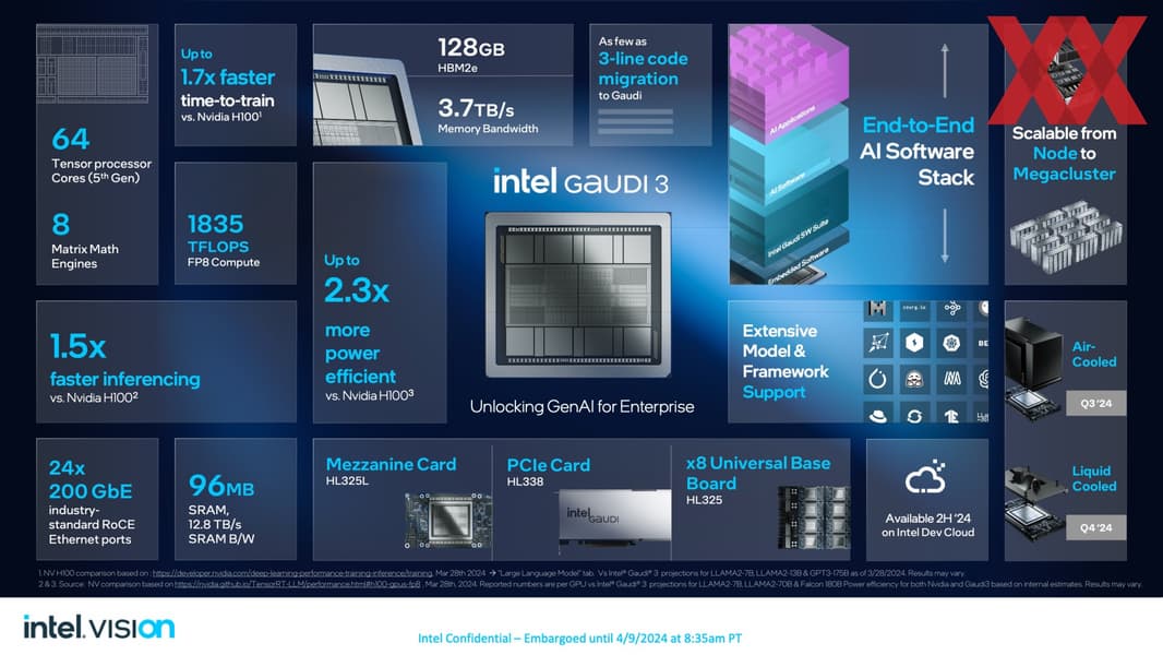 Первые образцы Gaudi 3 будут представлены партнёрам в текущей половине года, но массовые поставки ожидаются только во второй половине.