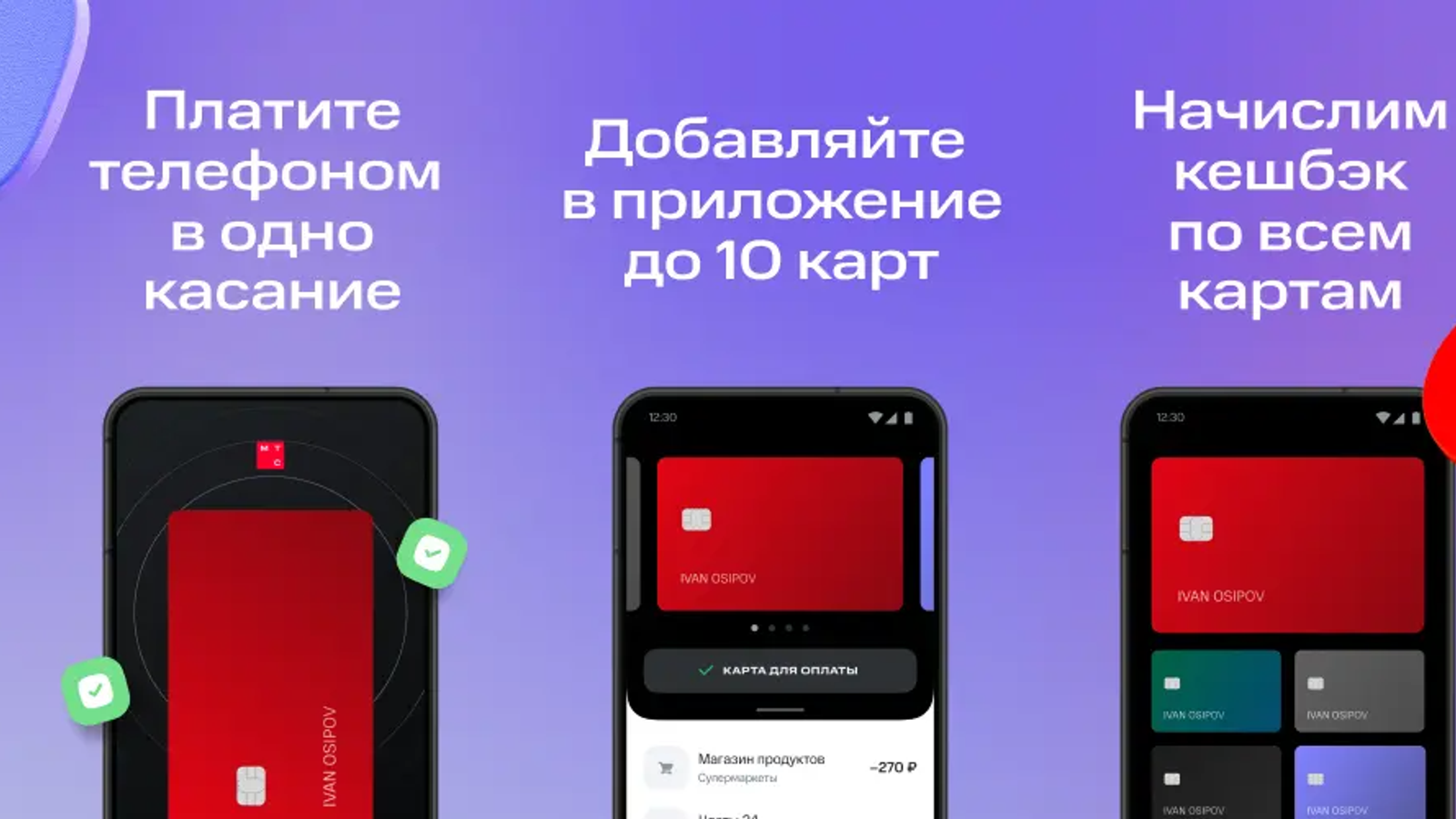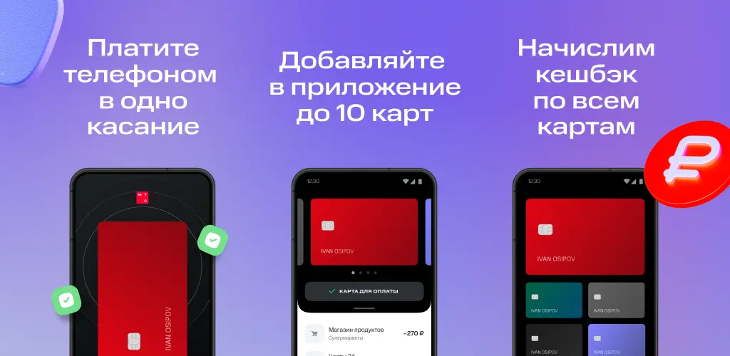 Сервис позволяет добавлять в приложение МТС Pay до 10 банковских карт и платить в «одно касание» той картой, которой удобно, при этом необязательно быть абонентом МТС.