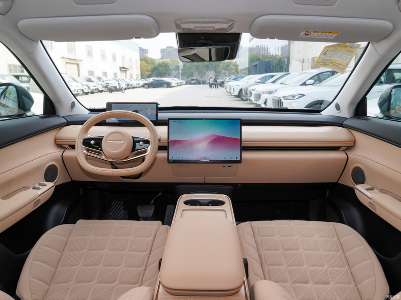 В салоне установлены два ЖК-экрана, а в отделке применяются экологичные материалы, включая мраморный сланец, дерево и микрофибру.