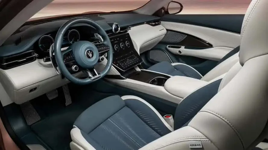 GranCabrio Folgore использует фирменную архитектуру бренда на 800 В и аккумуляторную батарею уникальной формы, которая не похожа на плоскую панель, типичную для электромобилей. Вместо этого батарея имеет Т-образную форму.