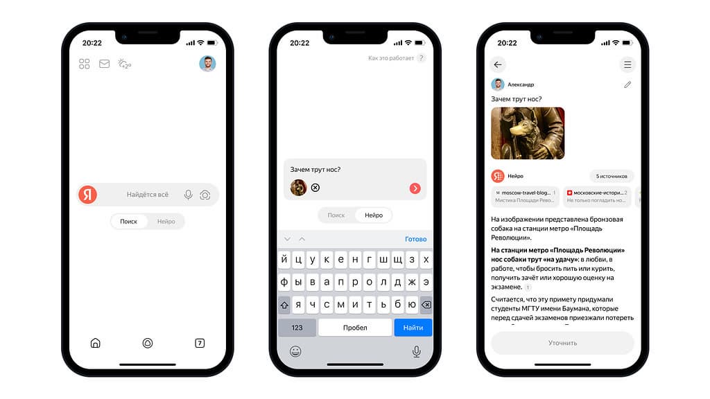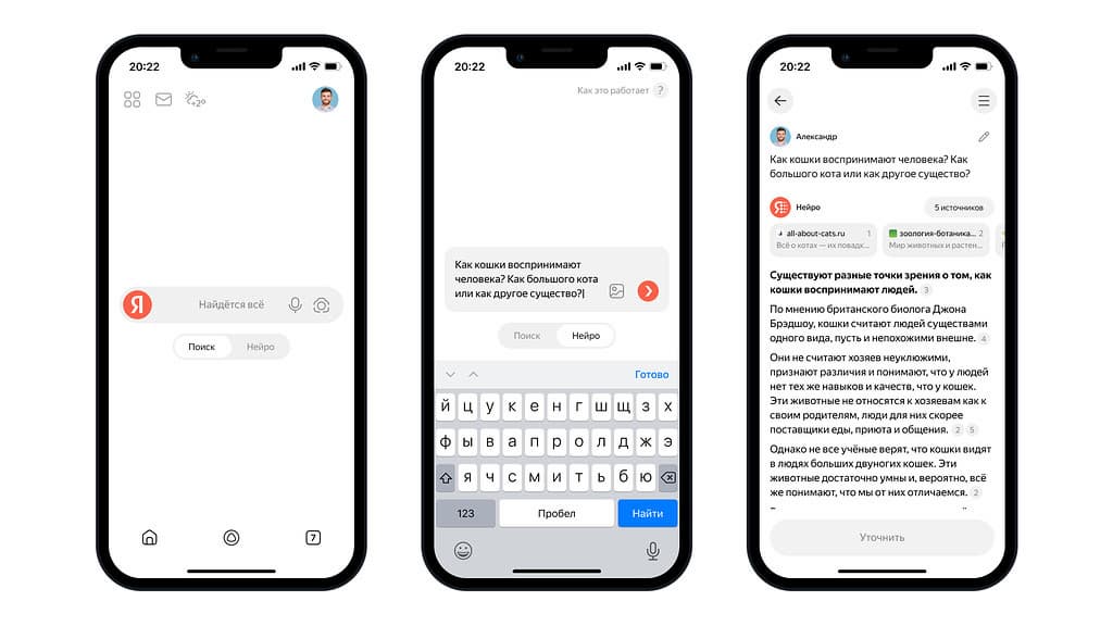 «Нейро» берёт факты не из памяти модели, а из источников в интернете. Это значит, что в его ответах содержится свежая и актуальная информация, даже если она появилась всего несколько часов назад. Сервис всегда подкрепляет свой ответ ссылками на веб-страницы, откуда брал сведения. Они располагаются отдельным блоком над текстом.