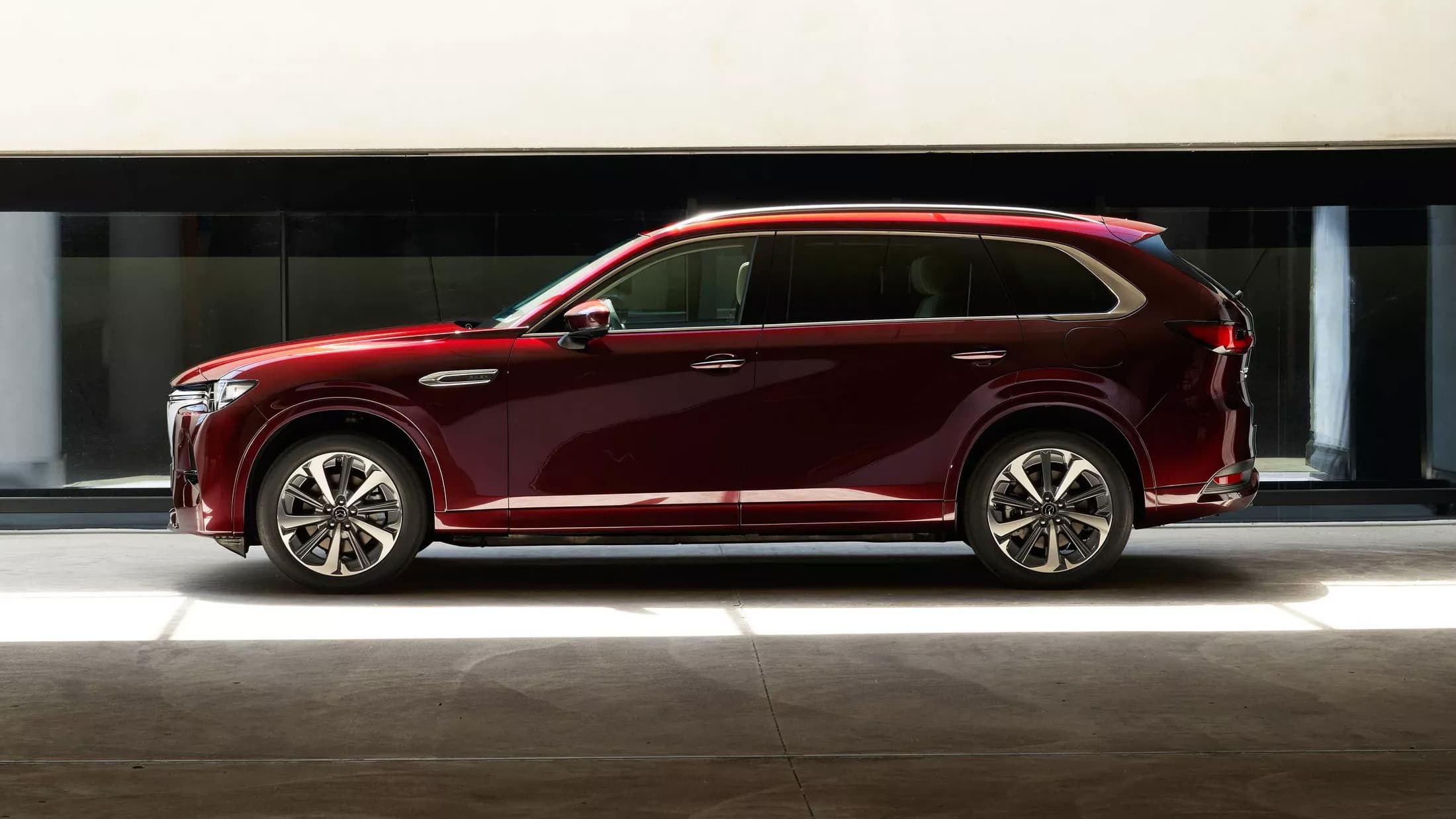 Конечно, европейский флагман не дотягивает до американского (длина и колёсная база CX-90 — 5121 и 3119 мм соответственно), но зато новая модель заметно крупнее CX-60 (4745 мм и 2870 мм соответственно).