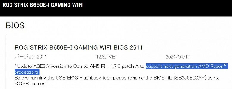 В описании BIOS не указано название, но все последние данные говорят о том, что новая линейка будет называться Ryzen 9000.