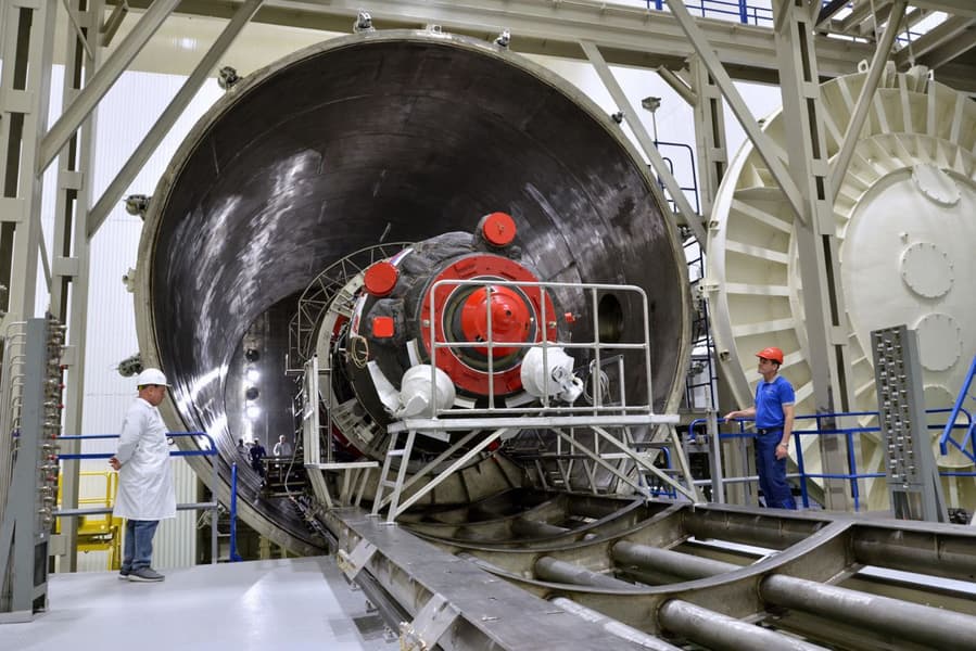 В монтажно-испытательном корпусе площадки 254 космодрома Байконур продолжается предполётная подготовка транспортного грузового корабля «Прогресс МС-27». Сегодня, 19 апреля 2024 года, на техническом комплексе состоялась транспортировка корабля в вакуумную камеру для проведения испытаний на герметичность. Об этом рассказали в пресс-службе Роскосмоса.