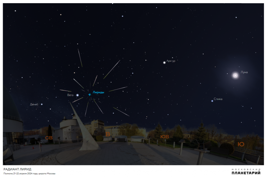 Начало активности метеорного потока Лириды пришлось на 14 апреля, 21–22 апреля — максимум действия, окончание активности — 30 апреля.