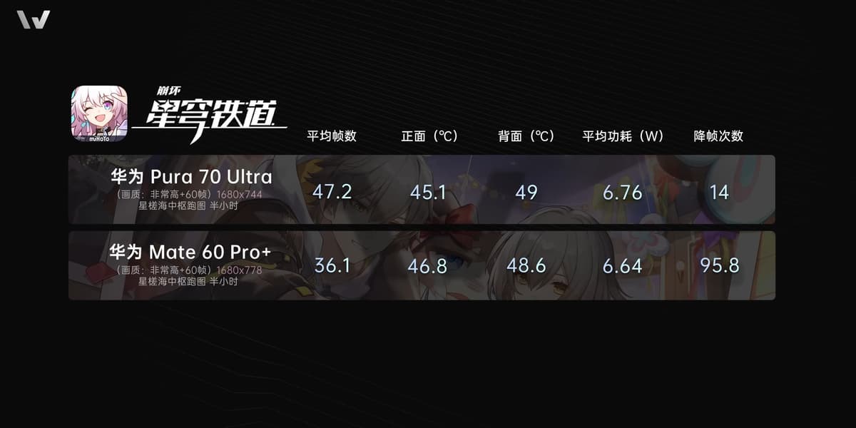 Там, где показатели идентичны из-за ограничения, можно видеть, что платформа Pura70 Ultra потребляет ощутимо меньше энергии. Но в ряде игр новинка заметно быстрее всё ещё при меньшем либо аналогичном потреблении. То есть тут Kirin 9010 действительно показывает себя, как новая платформа, хотя о ней всё ещё не всё известно.