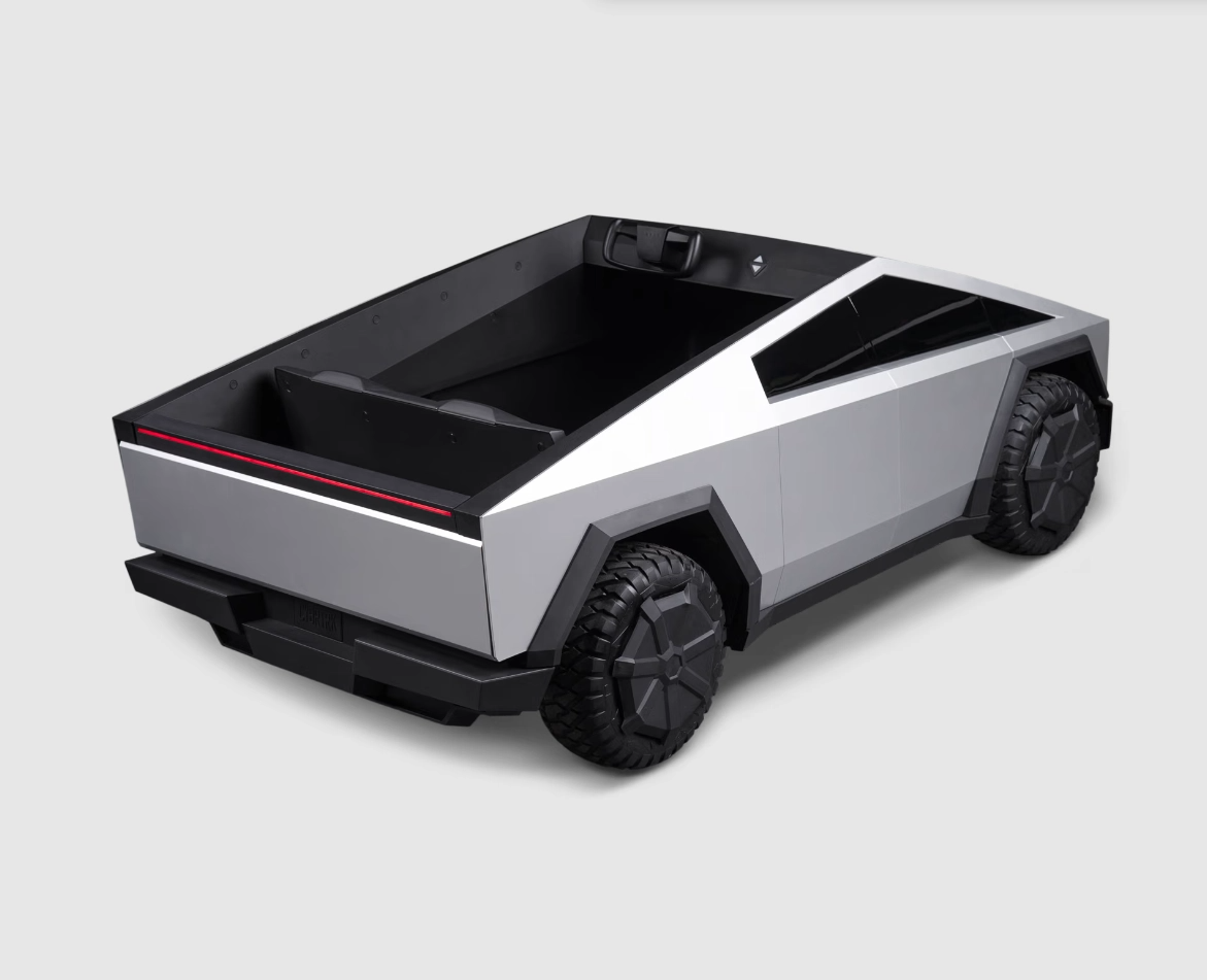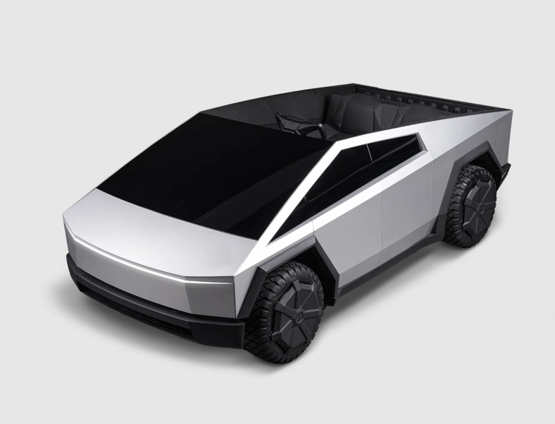 Он выполнен в стиле Cybertruck, он оснащён задним приводом, регулируемыми сиденьями, светодиодными фарами и задними фонарями. Этот детский автомобиль питается от литиевых батарей и имеет запас хода 19 километров. Его максимальная скорость составляет 8 км/ч, есть также режим движения со скоростью 4 км/ч.