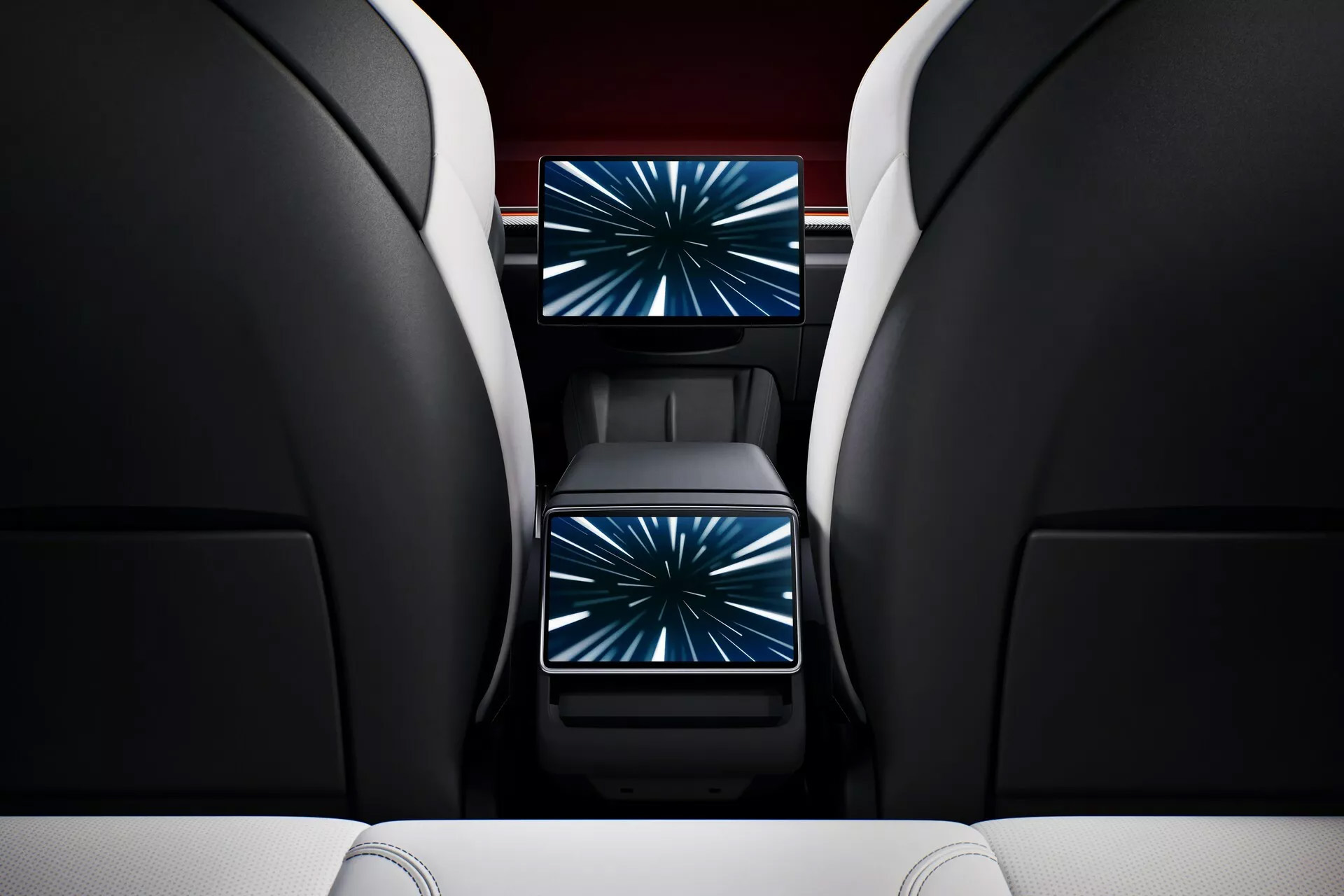 В салоне машины — новые спортивные кресла с улучшенной боковой поддержкой, «более глубокой и удобной посадкой», акустическая система с 17 динамиками, экран с диагональю 15,4 дюйма спереди и 8-дюймовый дисплей для пассажиров сзади. Также компания сообщила, что установила боковые «акустические стекла» и в целом улучшила шумоизоляцию.