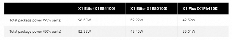 Согласно данным Android Authority, лимит мощности только для процессорной части Snapdragon X Elite X1E-84-100 составляет 98,5 Вт. Точнее, это максимальный показатель для 95% всех платформ, которые будут выпущены, а производители ноутбуков могут настраивать платформы для меньшего энергопотребления. Ни о каких 28 Вт речи не идёт. Причём даже для младшей модели Plus, показатель которой равен 42,52 Вт.
