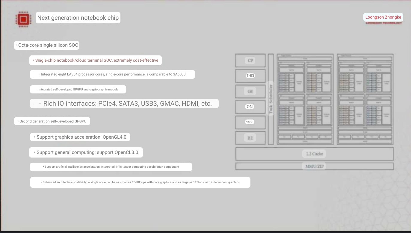 Известно, что 3B6600 ориентирован на мобильный сегмент, а 3B7000, вероятно, на настольный. У первого имеется iGPU LG200, о котором подробностей почти нет. Производительность составляет всего якобы 256 GFLOPS, и это крайне мало по современным меркам.