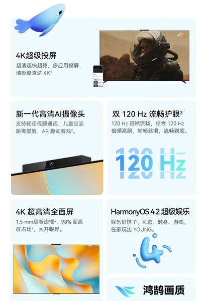 В Китае стартовали продажи недорогих телевизоров Huawei Vision Smart Screen 4 SE. Линейка представлена тремя моделями: 55 дюймов — 345 долларов, 65 дюймов — 415 долларов, 75 дюймов — 550 долларов.