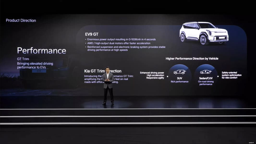 Kia официально анонсировала быструю и самую мощную версию своего флагманского семейного электрического кроссовера Kia EV9 (он, напомним, стал всемирным автомобилем 2024 года). Новая версия будет называться Kia EV9 GT, она получит «огромную мощность», полный привод, усиленную подвеску и «электронную тормозная систему» (Brake-by-wire).