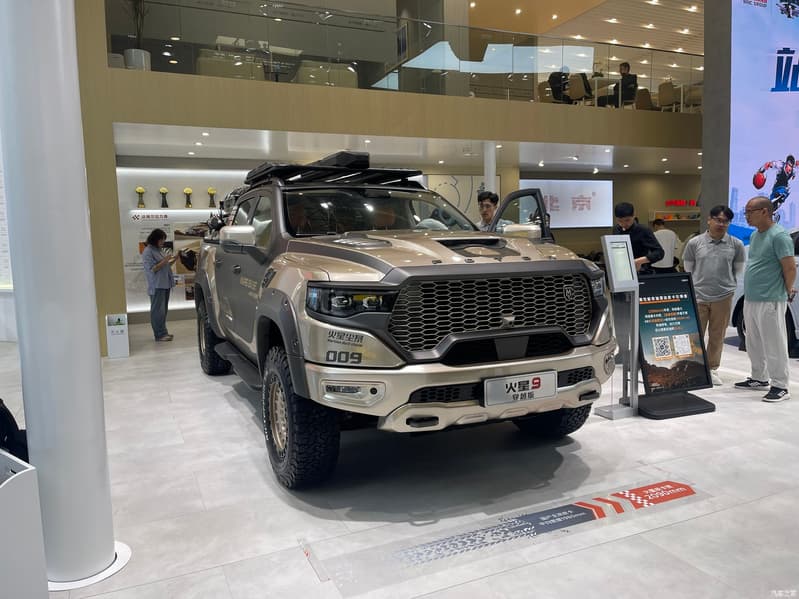 Автомобиль получил слегка модернизированную переднюю часть — в нижней части бампера появились выступы, похожие на буксирные проушины, а на капоте вырез, напоминающий воздухозаборник. Autohome называет такое исполнение «диким». Резина — стандартная «зубастая» BF Goodrich, дизайн колесных дисков не изменился. В целом своей передней частью Mars 9 Travel Edition все так же похож на американский Ram 1500.