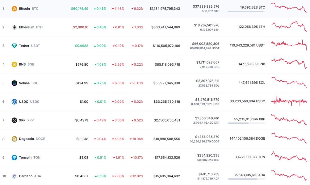 На этой новости Bitcoin рухнул — курс главной криптовалюты мира опустился до уровня 60 тыс. долларов (минус примерно 4,5% за сутки). У Ethereum минус почти 6%. В целом капитализация крипторынка за сутки упала на 4,68% — до 2,21 триллиона долларов США.