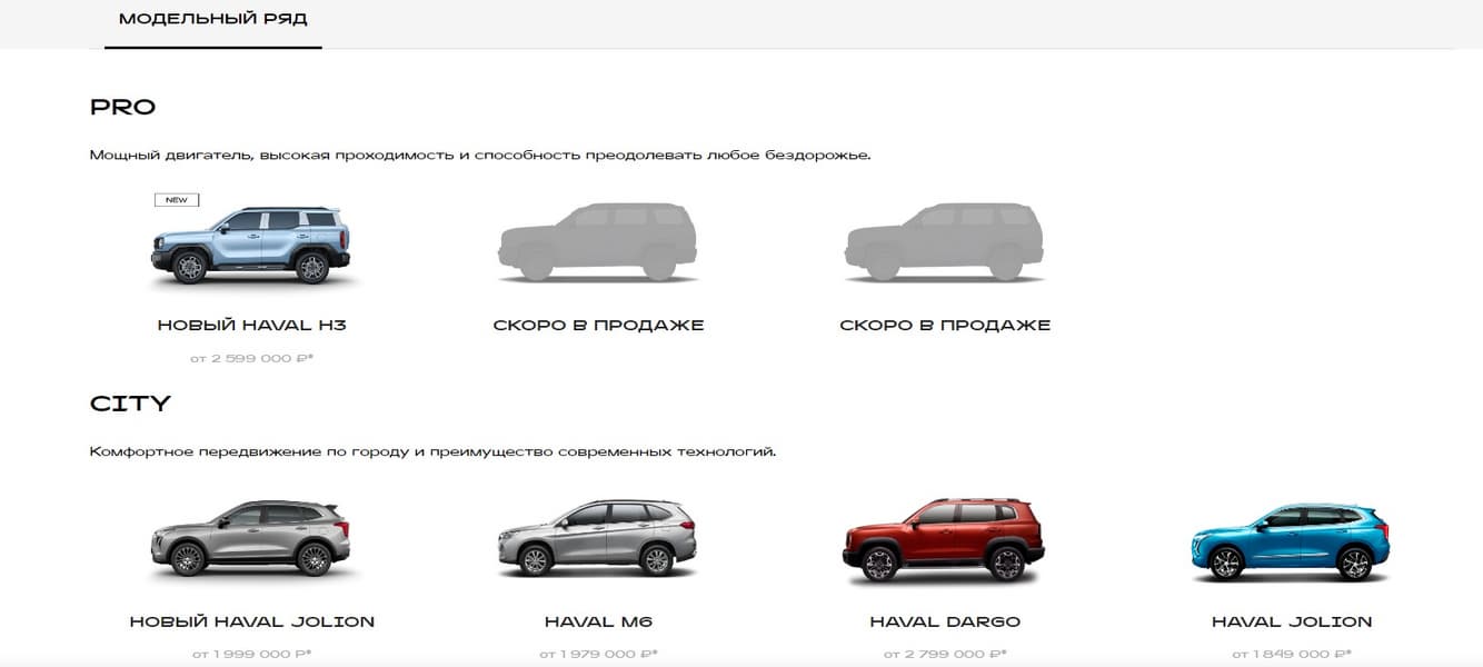 Известно, что оба автомобиля будут продаваться в новой дилерской сети Haval Pro, в которой будут продаваться рамные внедорожники и «кроссоверы повышенной проходимости». Уже до конца мая будет открыто 25 салонов, при этом их количество и география будут расти.