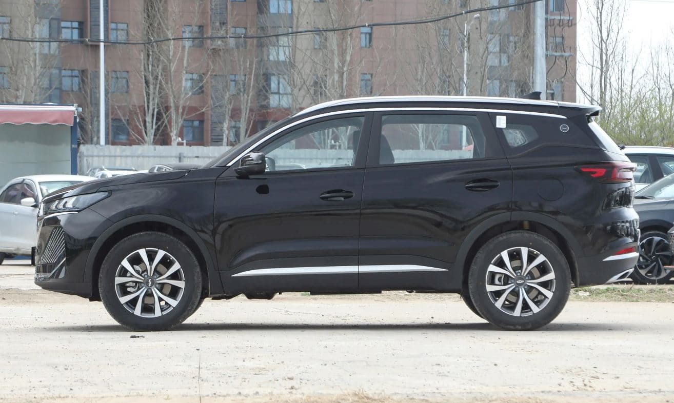 Размеры Chery Tiggo 7 2024 года составляют 4500 × 1842 × 1746 мм, а колёсная база — 2670 мм. Боковой профиль кузова существенно не изменился по сравнению со старой моделью, за исключением колёсных дисков. Новый автомобиль комплектуется 17- или 18-дюймовыми дисками с шинами размерностью 225/65 R17 и 225/60 R18.