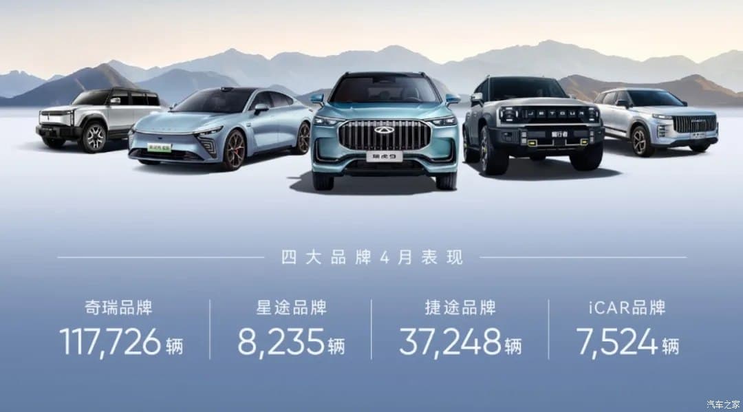 В структуре продаж брендов компании лидирует материнский: 117 726 автомобилей, проданных в апреле, были с шильдиком Chery. На долю Exeed пришлось 8235 авто, 37 248 автомобилей записал на свой счёт бренд Jetour и ещё 7524 авто пришлось на новый бренд iCAR (он пока представлен только одним кроссовером iCAR 03, но на подходе более интересные машины).