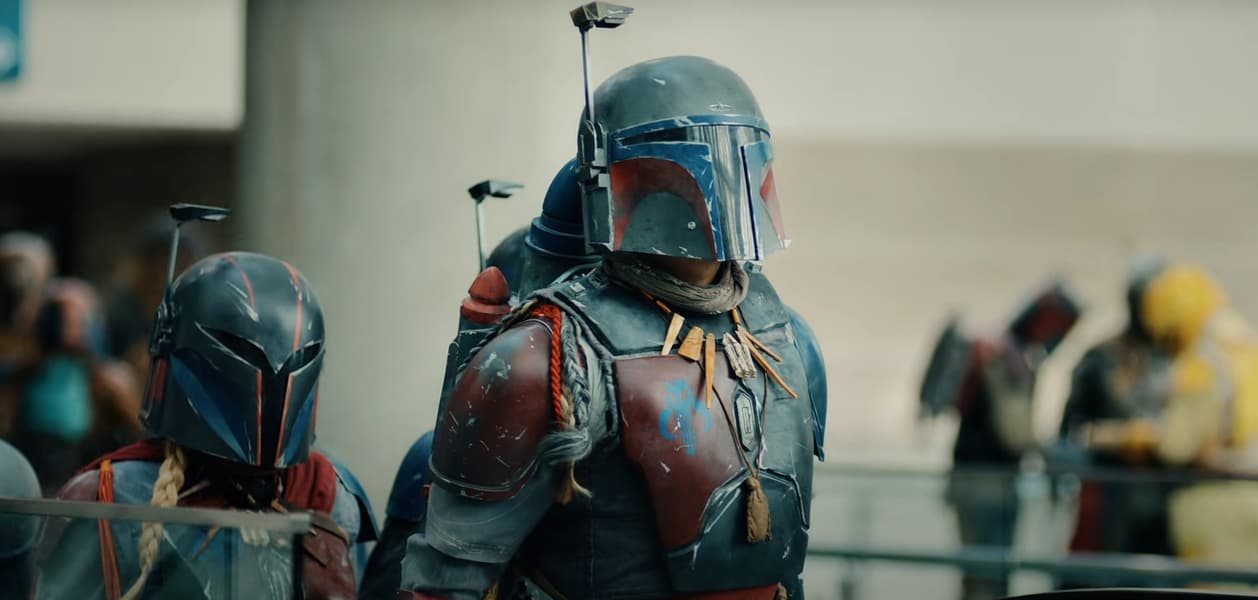 Персонаж в мандалорском костюме прогуливается по городу и в итоге достигает места сбора, заполненное поклонниками. В конце ему приходит ссылка с геолокацией, которая позволяет легко находить других пользователей iPhone.