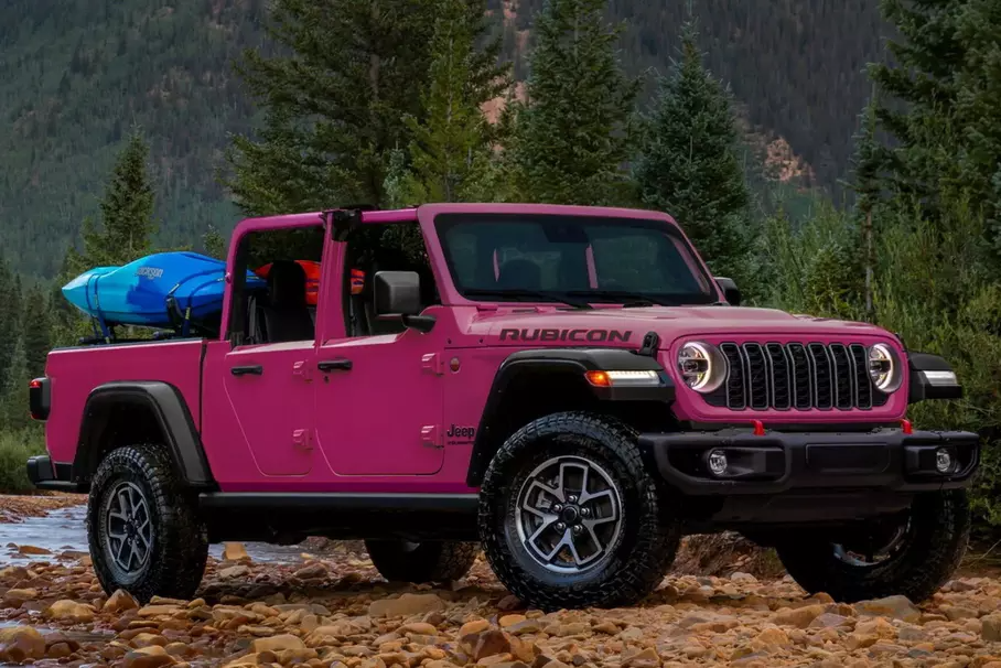Jeep начнёт красить пикапы Gladiator в ярко-розовый цвет под названием Tuscadero Pink. Глава бренда в Северной Америке Билл Пеффер подтвердил, что с 2024-го модельного года в палитре появится этот необычный оттенок.