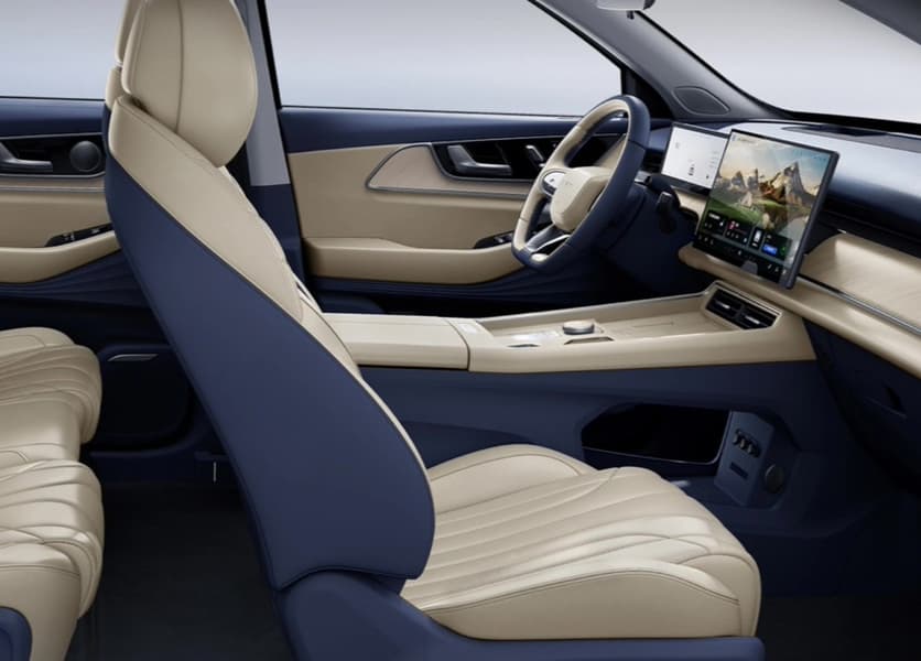 Габариты кроссовера — 4795 × 1930 × 1738 мм, колесная база — 2770 мм. В оснащении — цифровая приборная панель с экраном диагональю 10,25 дюйма, медиасистема на базе SoC Qualcomm Snapdragon 8155 и с экраном диагональю 15,6 дюйма и разрешением 2,5К. Также есть система мониторинга давления в шинах, камера заднего вида и парковочные датчики сзади, панорамная крыша с люком, датчик дождя. В топовой версии — акустика Sony, передние кресла с электрорегулировками, беспроводная зарядка для смартфона.