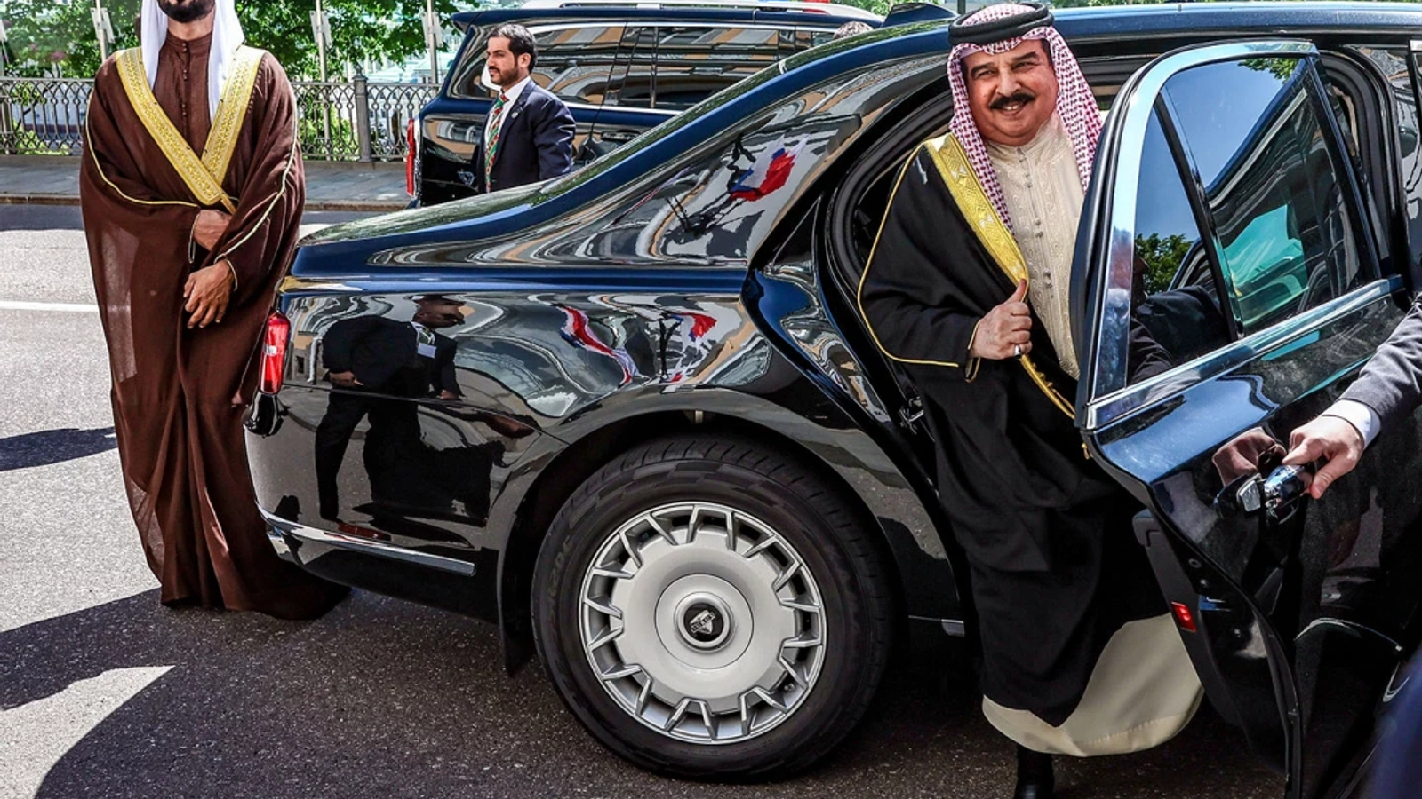 Король Бахрейна был с официальным визитом в Москве, в ходе которого лидеры стран обменялись подарками. Сообщается, что Хамад бен Иса Аль Халифет получил лимузин Aurus Senat 2018 года.
