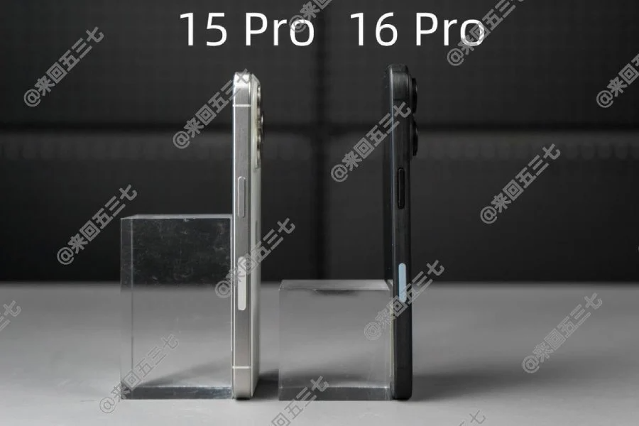 На новых фотографиях сравниваются макет iPhone 16 Pro и реальный iPhone 15 Pro. Видно, что самым заметным отличием будет размер экрана.