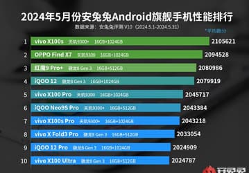 MediaTek превзошла Qualcomm в сегменте элитных смартфонов. Новейший Vivo X100s на SoC MediaTek Dimensity 9300 Plus возглавил майский рейтинг флагманов AnTuTu