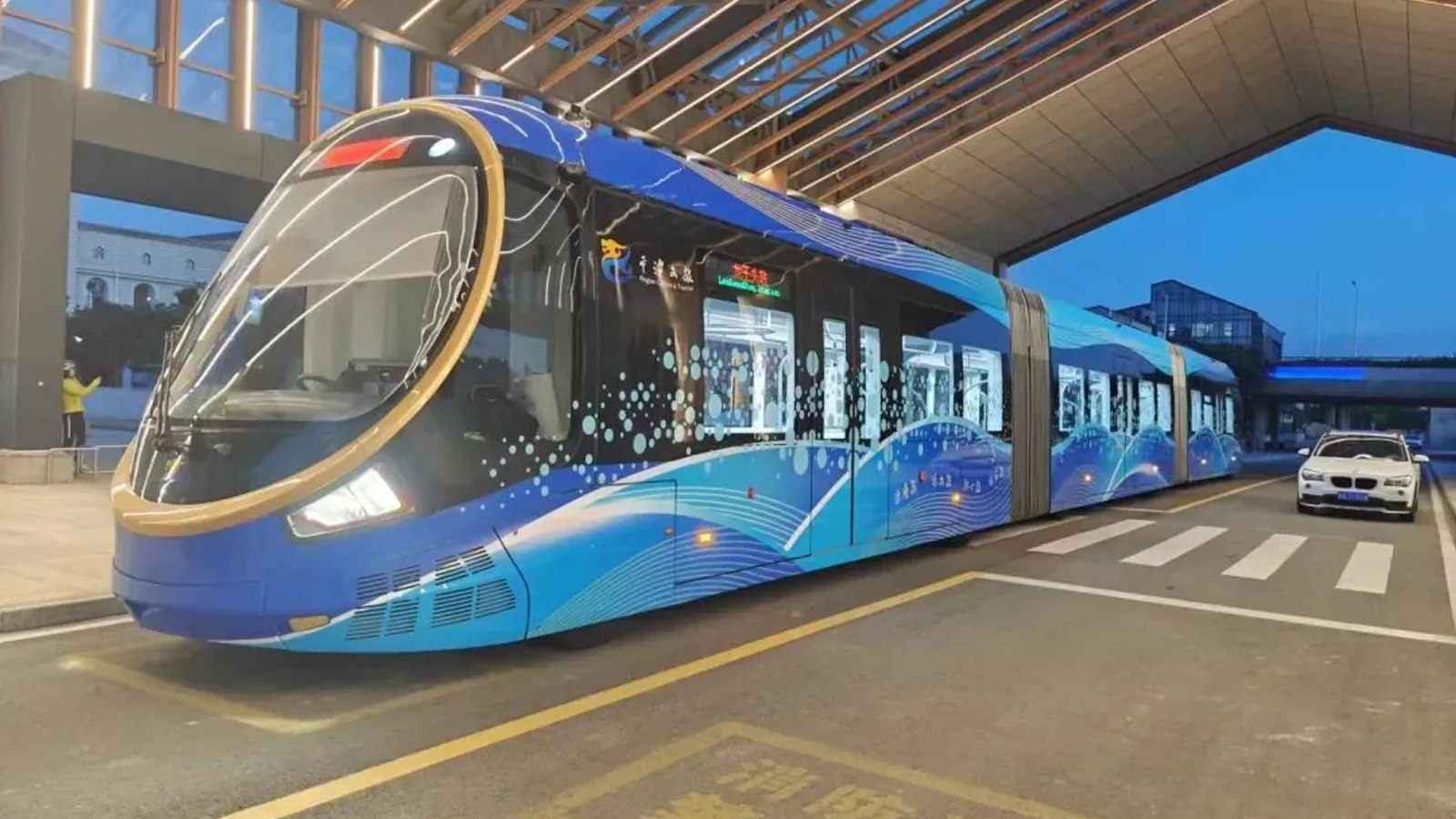Super Virtual Rail Train (SRT3.0), разработанный CRRC Zhuzhou Locomotive, приступил к тестированию нового маршрута от высокоскоростной железнодорожной станции Пинтань до океанического парка Лунвантоу в Китае.
