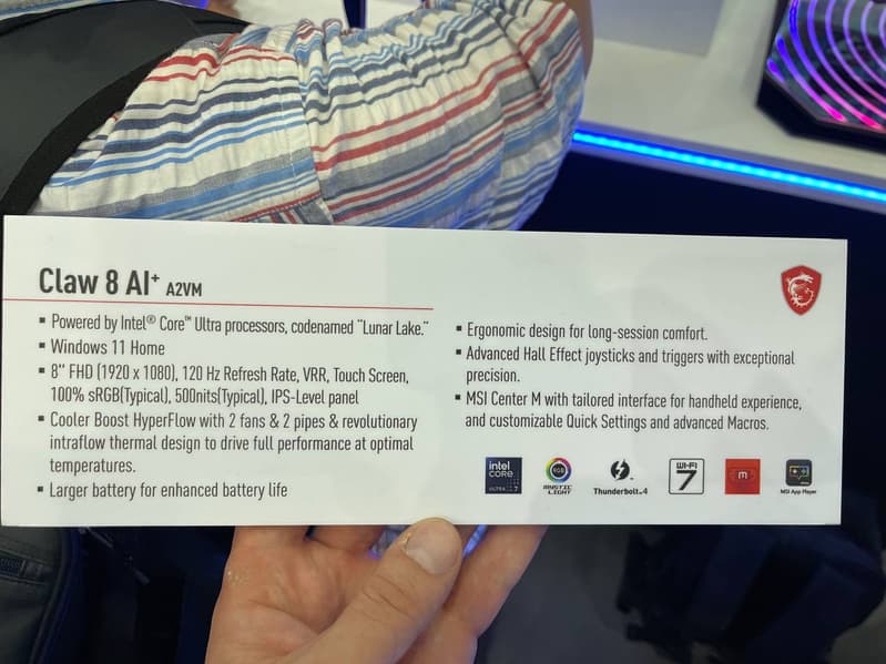 Компания MSI совсем недавно выпустила на рынок свою портативную игровую приставку Claw, и вот теперь на Computex 2024 уже привезла версию Claw 8 AI Plus.