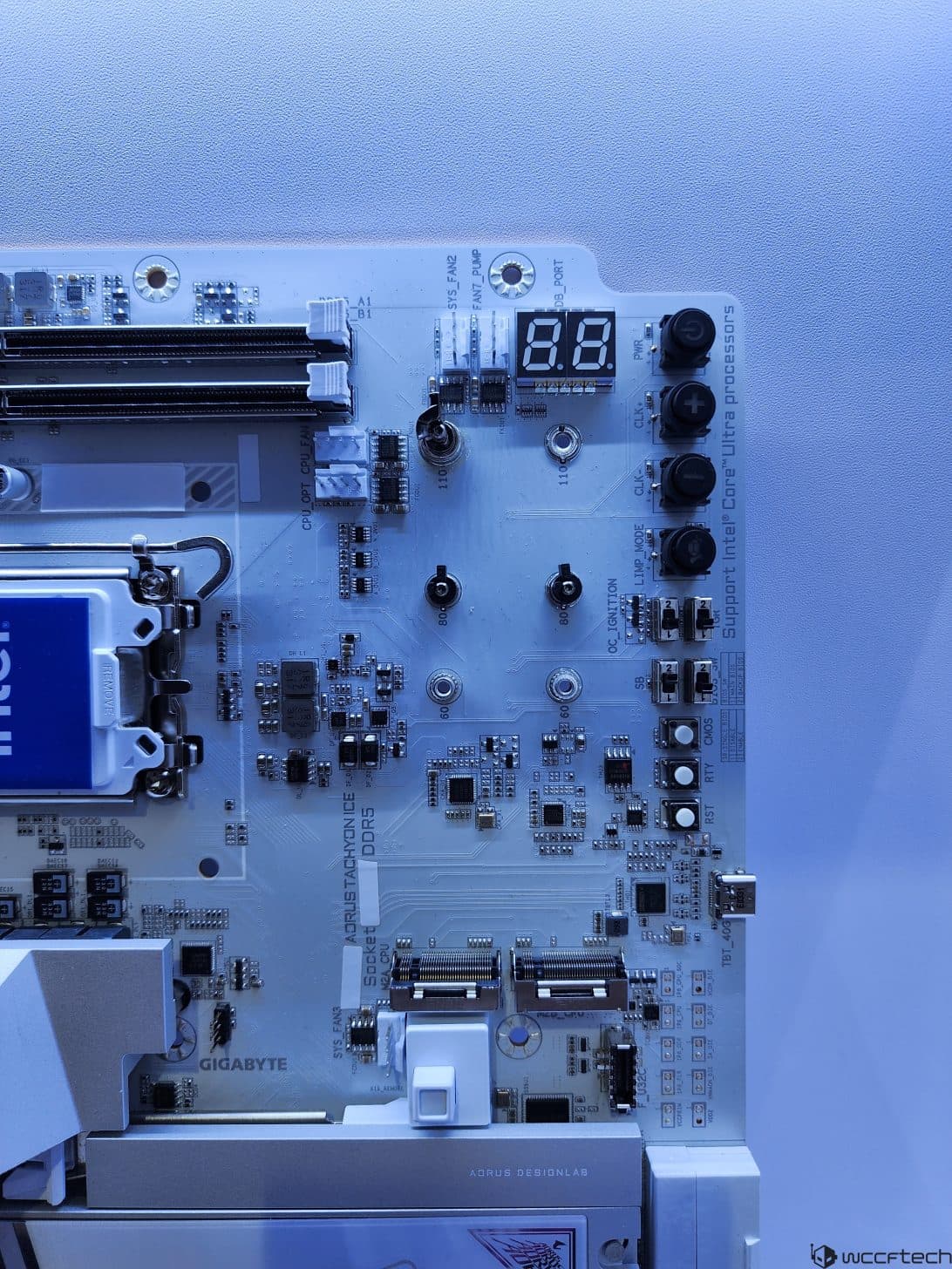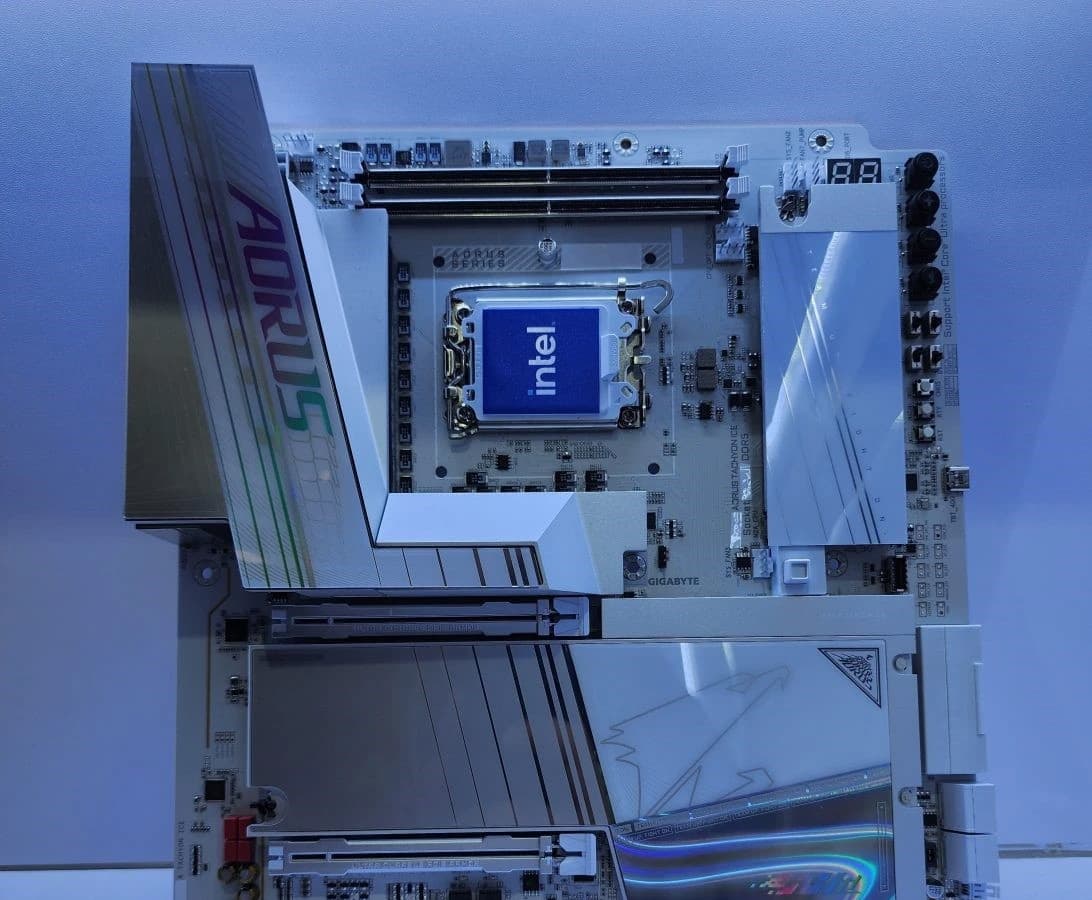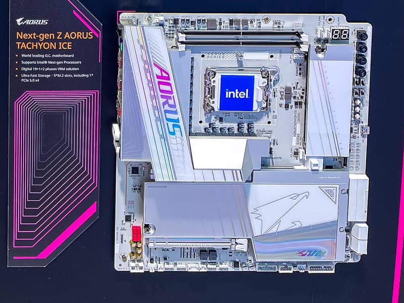 На выставке Computex 2024 Gigabyte представила материнскую плату Z Aorus Tachyon ICE с оригинальным дизайном: процессорный разъем развернут тут на 90 °С (он теперь горизонтальный, а не вертикальный), а слоты для модулей оперативной памяти разместились не справа от сокета, а сверху. На обычном месте для слотов памяти разместились два разъема M.2 для твердотельных накопителей.