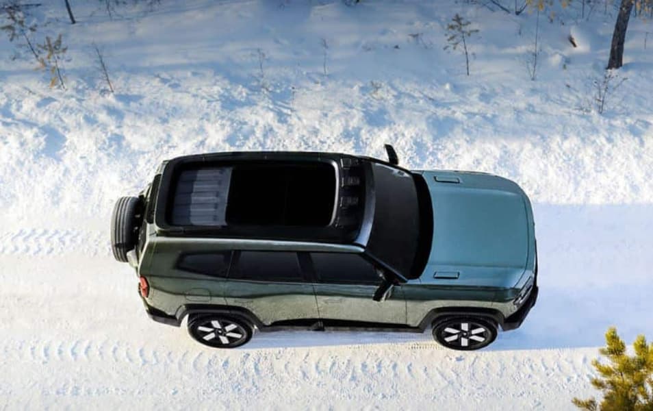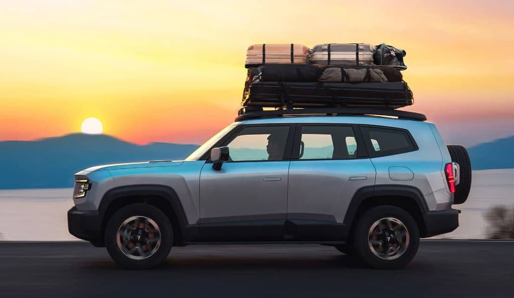 На крыше расположены четыре фонаря и багажники, на которых можно разместить походную палатку. Полноразмерная запаска расположена по центру задней части.
