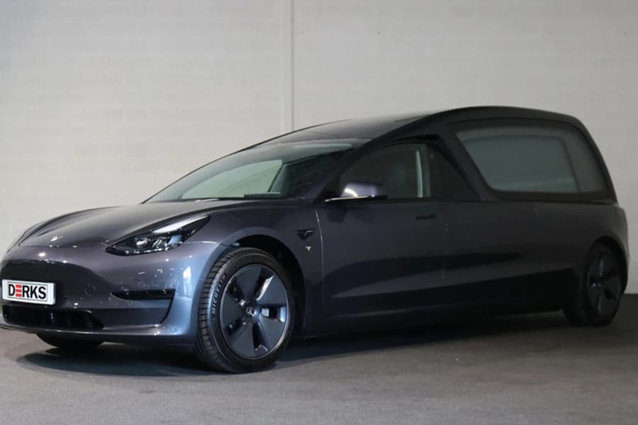 Машина переделана из заднеприводной Model 3 Standard Range Plus. Запас хода составляет 375 км — вполне достаточно, учитывая специфику использования катафалков. Интересно, что пробег автомобиля, выпущенного в 2022 году, невелик — всего 135 км.