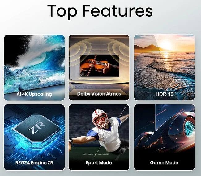 Телевизоры оснащены технологией Toshiba Regza Engine ZR, которая повышает качество изображения. Серия специально разработана для любителей спорта и геймеров, для который предусмотрены режимы «Спорт» и «Игра». Поддерживаются режимы ALLM (автоматический режим с низкой задержкой), VRR (переменная частота обновления) и e-ARC (улучшенный обратный канал звука).