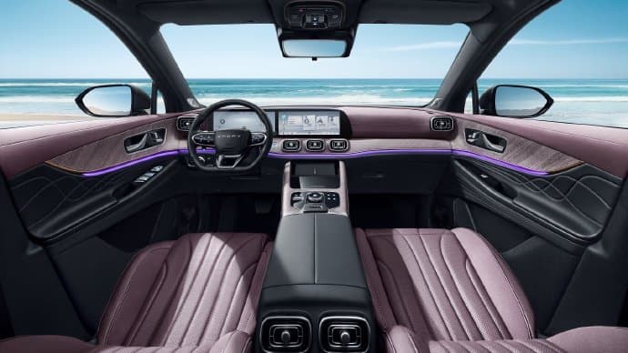 Chery Tiggo 9 2025 оснащается двумя экранами с диагональю 12,3 дюйма, акустической системой Sony, многослойными шумоизолирующими стеклами, системой бесключевого доступа, электроприводом двери багажника, панорамной крышей с люком, адаптивным круиз-контролем, системой кругового обзора, различными системами помощи водителю.