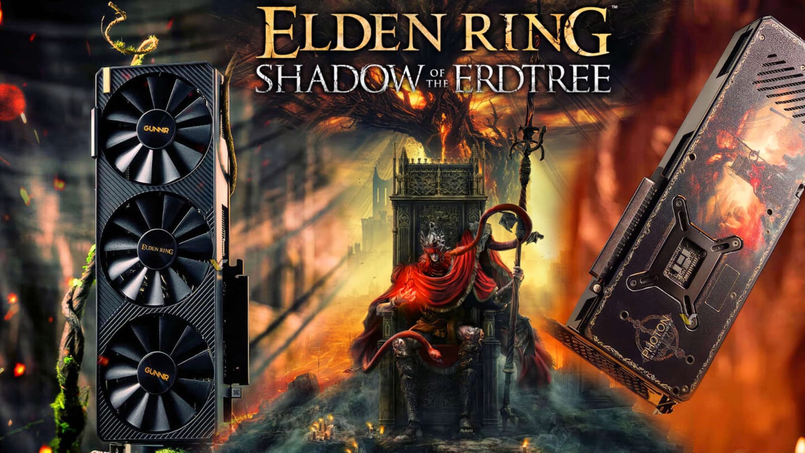 Компания Gunnir представила первую на рынке видеокарту, посвящённую популярной игре Elden Ring, которая в 2022 году получила звание игры года на мероприятии The Game Awards.