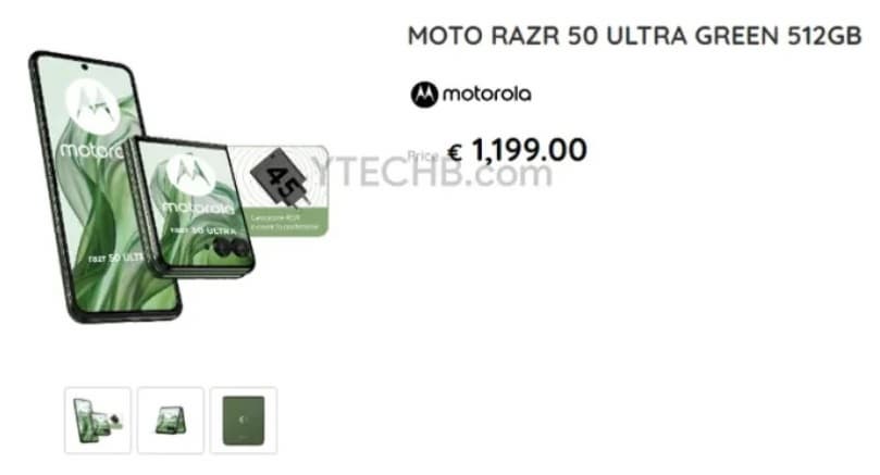Базовая модель Moto Razr 50 с 8 ГБ оперативной и 256 ГБ флеш-памяти будет стоить 899 евро, смартфон будет предлагаться в оранжевом, сером и песочном цветах. Moto Razr 50 Ultra, в свою очередь, будет стоить 1199 евро за версию с 12 ГБ оперативной и 512 ГБ флеш-памяти. Смартфон выйдет в зелёном, синем и персиковом цветах.