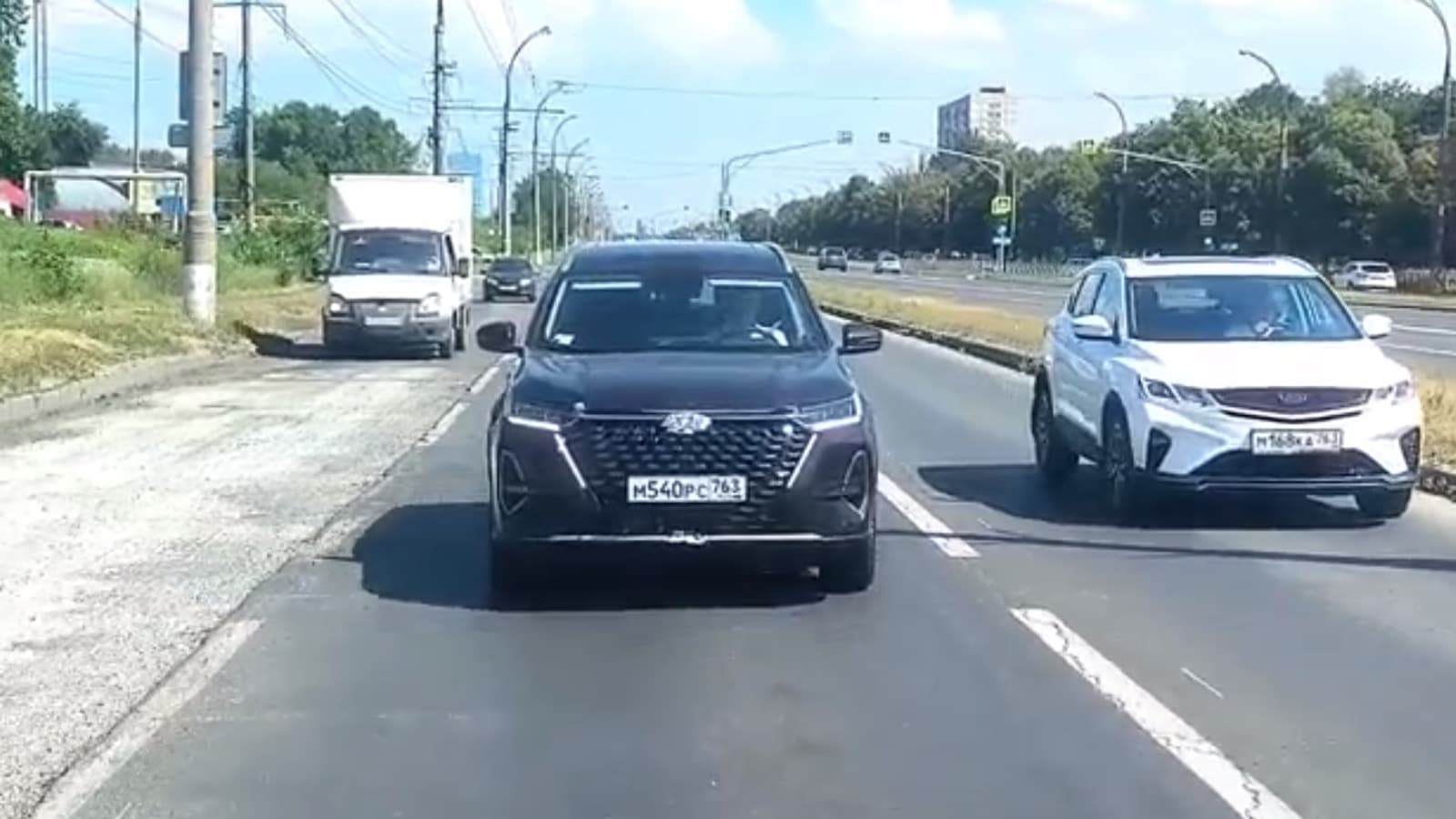 Автомобиль из автопарка НТЦ ВАЗа Chery Tiggo 8 с заклеенными шильдиками рассекает по улицам Тольятти, о чем пишет инсайдерский паблик Avtograd News в соцсети «ВКонтакте».