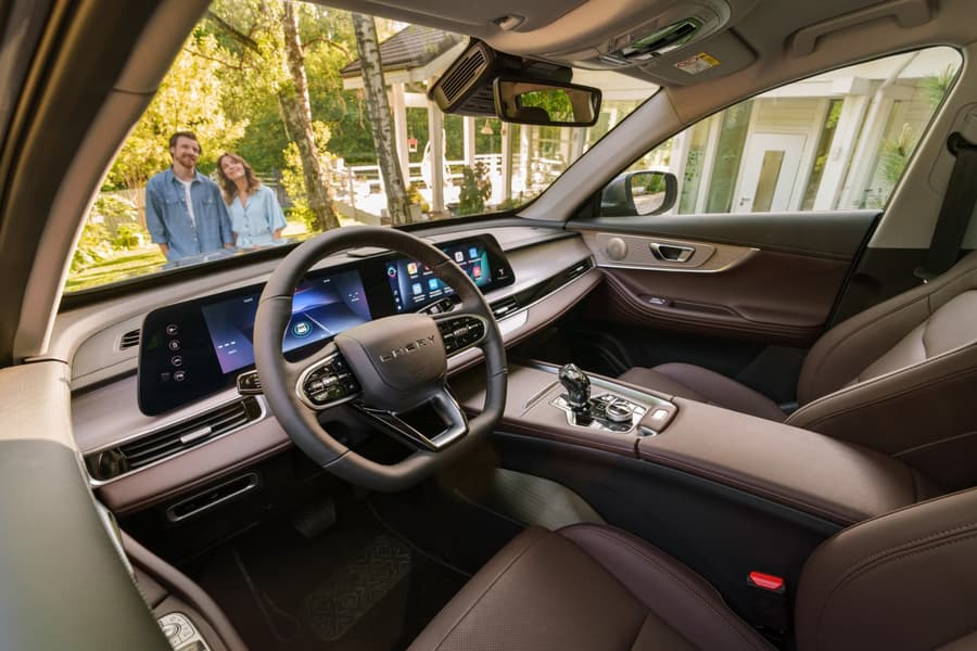 Внешне, своей передней частью, обновленный Tiggo 7 Pro Max напоминает гибридный Tiggo 7, а вот салон с изогнутым блоком экранов с диагональю 12,3 дюйма каждый — примерно как у Tiggo 8 Pro Max и Arrizo 8. Особенность, которая обращает на себя внимание, — изображение тигра, нанесенное на ручку переключения передач.