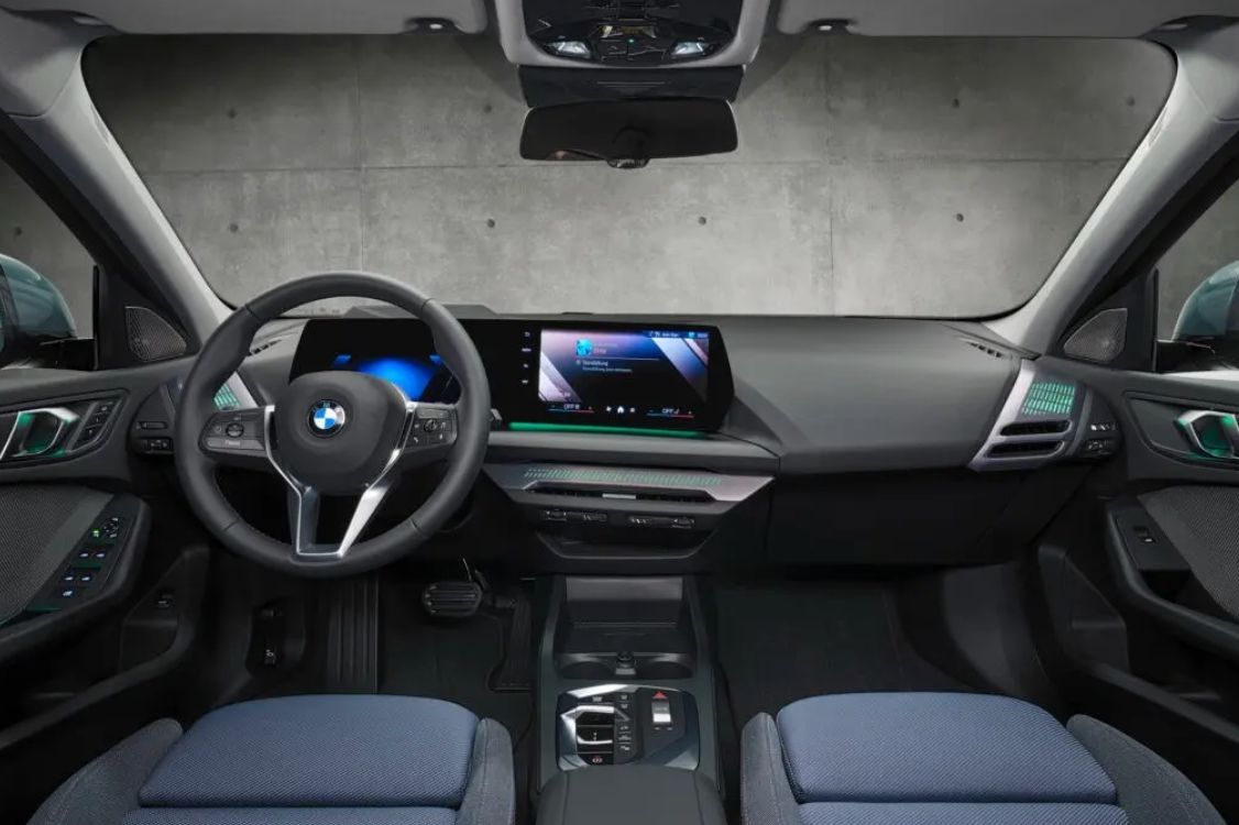 В салоне центральная консоль BMW 1 серии оснащена встроенным двойным экраном, состоящим из 10,25-дюймовойЖК-панели приборов и 10,7-дюймового центрального экрана управления. Он оснащен автомобильной системой OS 9.
