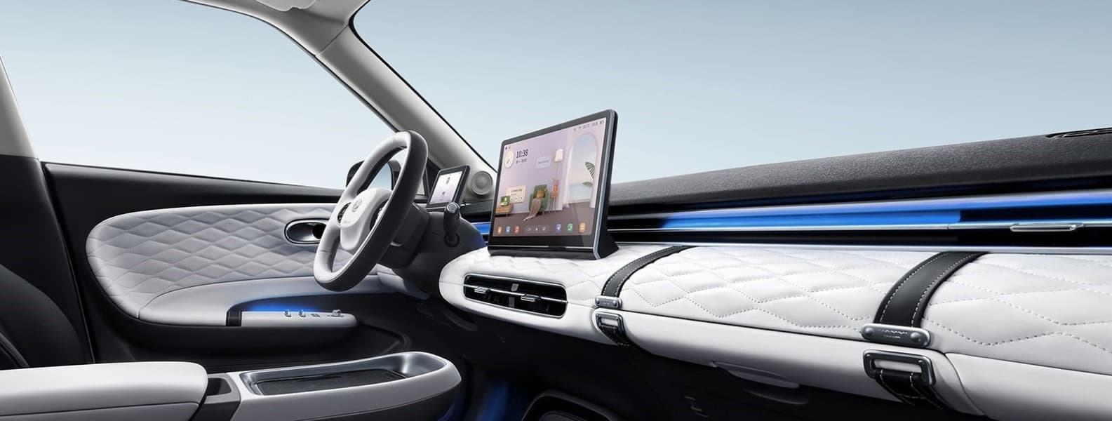 Машина может похвастаться необычным дизайном, яркими цветами, безрамочными стеклами, оригинально оформленным интерьером, большим экраном мультимедийной системы, быстрой зарядкой, системой удаленной парковки и светодиодной оптикой.