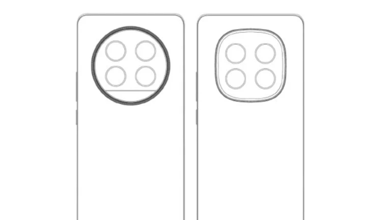 Realme 13 Pro (слева на эскизе) получит дизайн, аналогичный его предшественнику, Realme 12 Pro, с круглым модулем для камеры на задней панели.