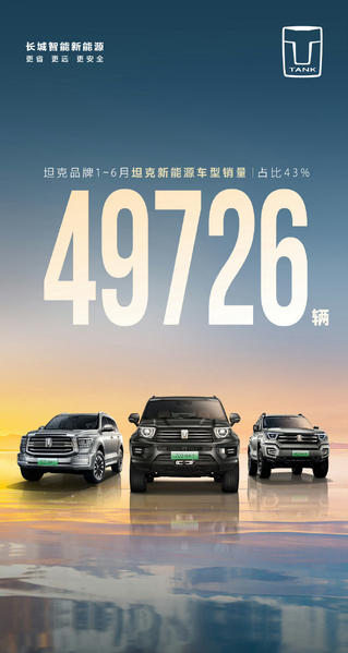 С января по июнь текущего года было продано 49 726 автомобиля Tank «на новой энергии» (гибридов Tank 400/500/700 Hi4-T). Great Wall говорит, что она закрепила за собой 66,8% китайского рынка подключаемых гибридных внедорожников.