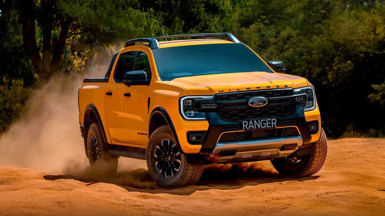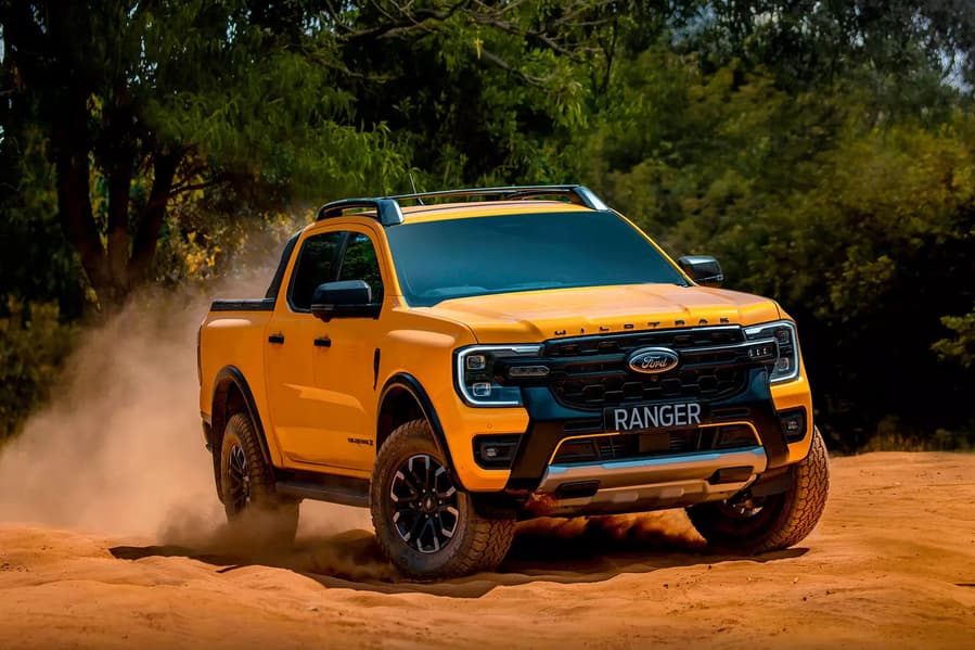 У дилера из Перми появился пикап Ford Ranger последнего поколения T6.2 2024 года выпуска. Автомобиль предлагается в особом исполнении Wildtrak с нестандартной решеткой радиатора, 18-дюймовым легкосплавными колесными дисками Boulder Grey и вставками в салоне из алюминия.