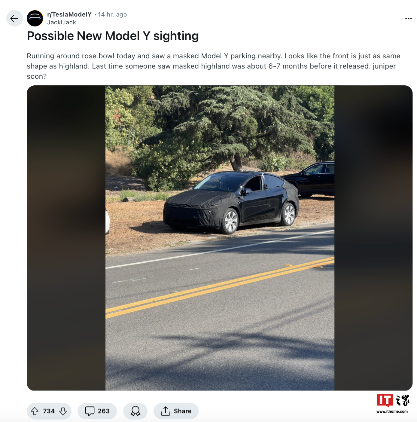 Тестовая обновленная Tesla Model Y (модель 2025 года) была замечена возле стадиона Роуз Боул в Калифорнии, США. Как сообщает IT Home, автомобиль выйдет в следующем году.