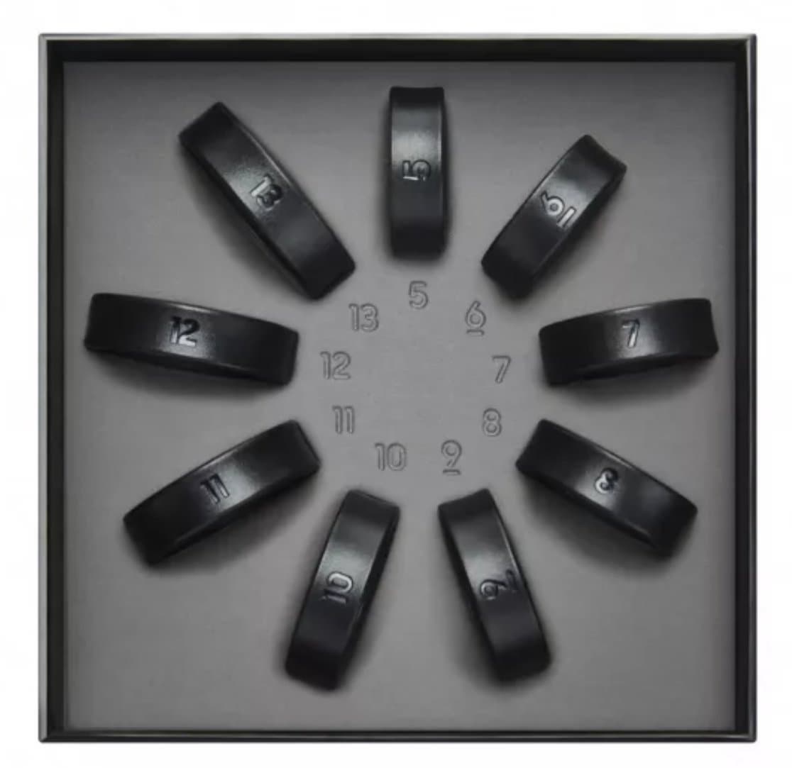Известный инсайдер Ice Universe опубликовал фотографию, на которой показаны умные кольца Samsung Galaxy Ring в девяти размерах.